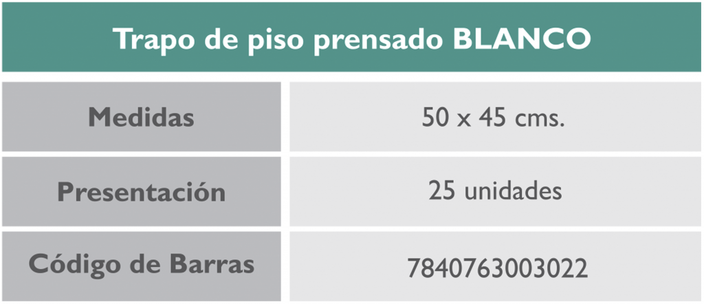 Home / Trapos de Pisos / Trapo prensado color BLANCO Trapo prensado color BLANCO Category: Trapos de Pisos Related products Trapos de Piso Pabilo PREMIUM Read more Trapo de piso PABILO Read more Mopa para pisos Multicolor con palo Read more Paños para Pisos Read more